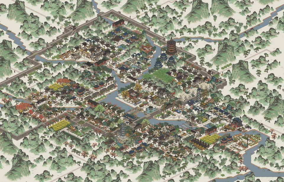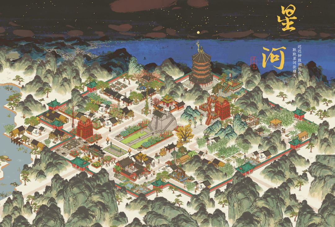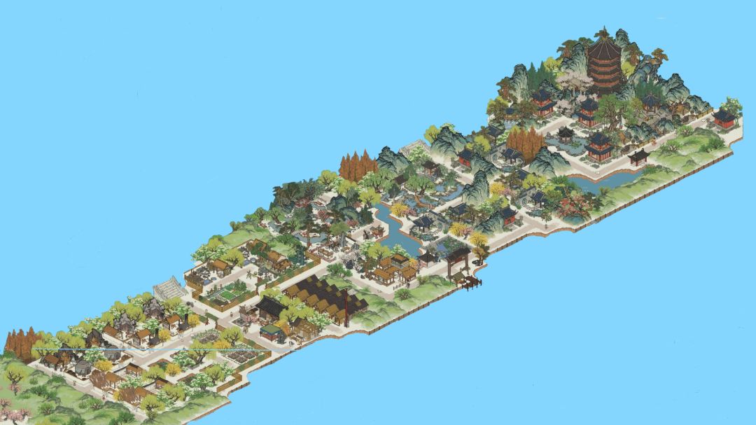 🌕海上升明月,天涯共此时🌕 前段时间百景图也是开放了新城市——鸡鸣山 鸡鸣山地方不大,而且有个特点就是不能建造娱乐建筑(除了任务的几个),这就导致想让鸡鸣山好看就得从别的城市搬建筑来,这也是我隔这么长时间才出布局的原因。 PS:运建筑真的太费时间和菜肴了 好了废话不多说,直接看布局 先来一张全景图镇楼 接下来开始说说各个区域和布局思路 首先是码头的区域:如果有人走水路进城在城外唯一的地方能看到仓库