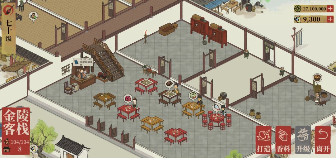 金陵客栈 2.1.2版本将应天府客栈玩法与府邸玩法结合了起来,各位知府大人也可以装修金陵客栈了。 金陵客栈的玩法与知府府邸非常相似,甚至可以说是一样。但是金陵客栈有几点比较特殊: 1.金陵客栈不与任何一个知府府邸互通家具; 2.金陵客栈的灶台和床铺等家具单位无法移动或拆除。 其次,无论建造多少个桌子,单次前来的顾客上限还是保持4个不变,与更新前持平。但如果桌子数量少于4个,单次前来的顾客上限的数量