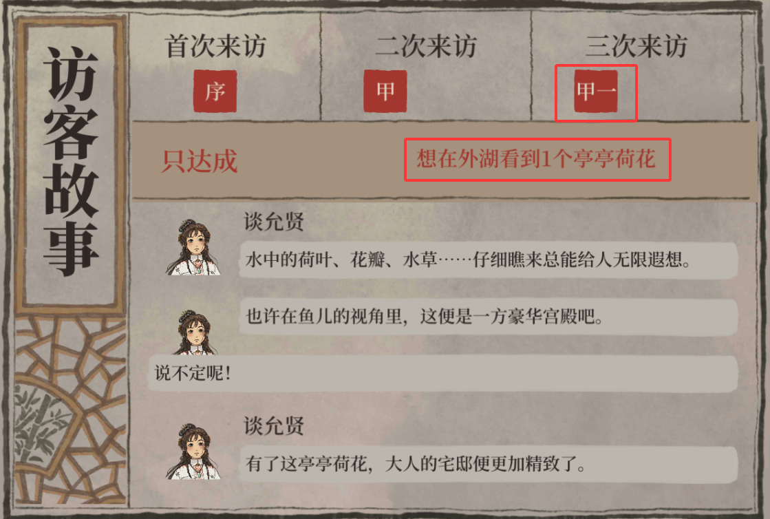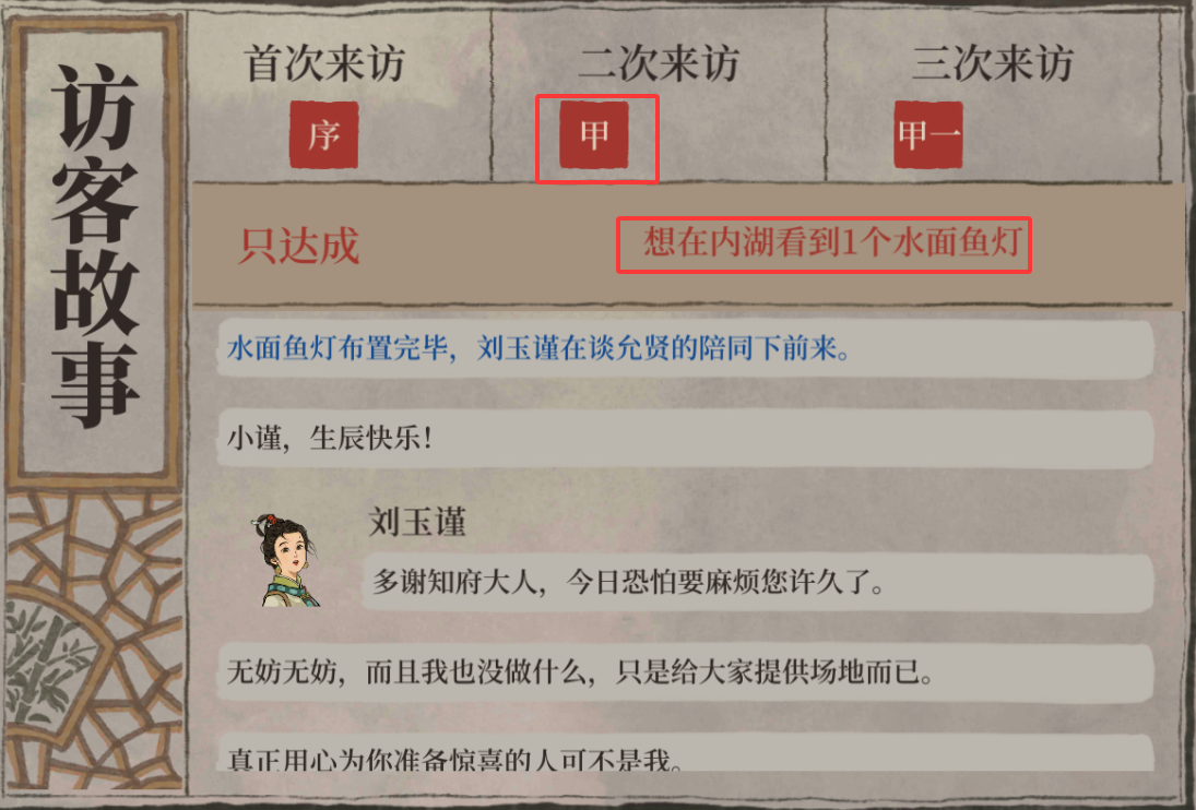 宅邸访客达成条件-赏鱼灯