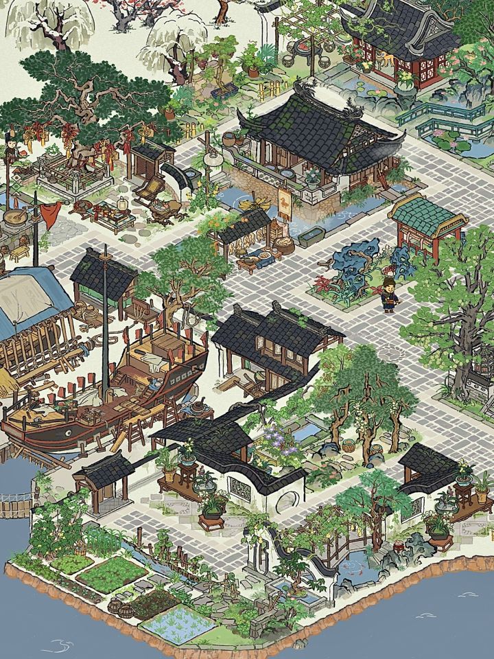 应天府龙江里、百工里夏日傍晚可以去这里散步喔~#江南百景图 #江南百景图应天府布局