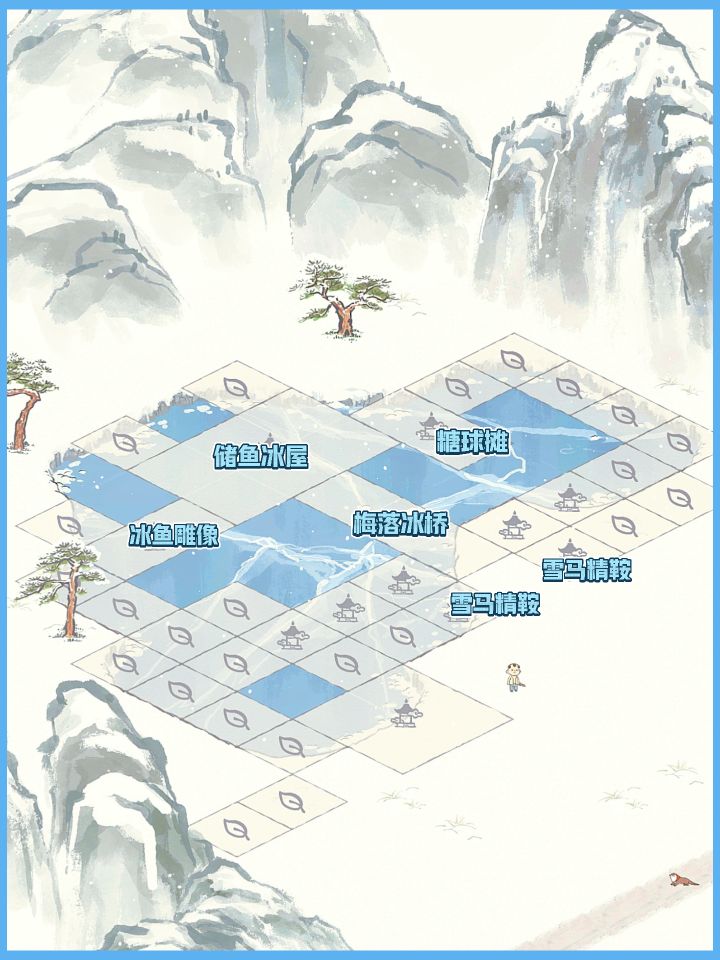 建筑:梅落冰桥、储鱼冰屋、冰鱼雕像、糖球摊#江南百景图 #发现好游戏 #古风游戏 #江南百景图布局 #江南百景图白雪镇 #游戏日常 #好玩的模拟经营游戏 #模拟经营游戏