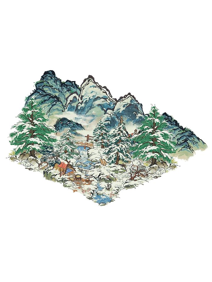 松溪营地与日落雪山加上依山而立的雪宠伴松仿佛看到了曾经见过的雪山美景🏔️ 想扩大的话在周围摆上山体与树就好啦(>^ω^<)#江南百景图 #江南百景图布局