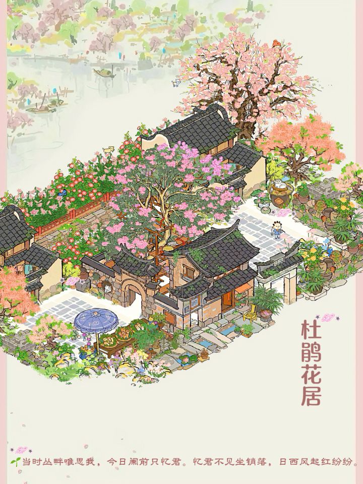 建筑:杜鹃花居、去年桃花、春山杜鹃、旧垣烟树、蓬草苔藓、芳草苔藓、繁花苔藓、赏菊小几、岁丰狸闲、八明瓦房、瓦罐花墙、野菌摊、#江南百景图 #江南百景图布局 #模拟经营游戏 #古风游戏 #好玩的模拟经营游戏 #发现好游戏 #江南百景图宁波府