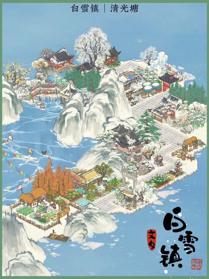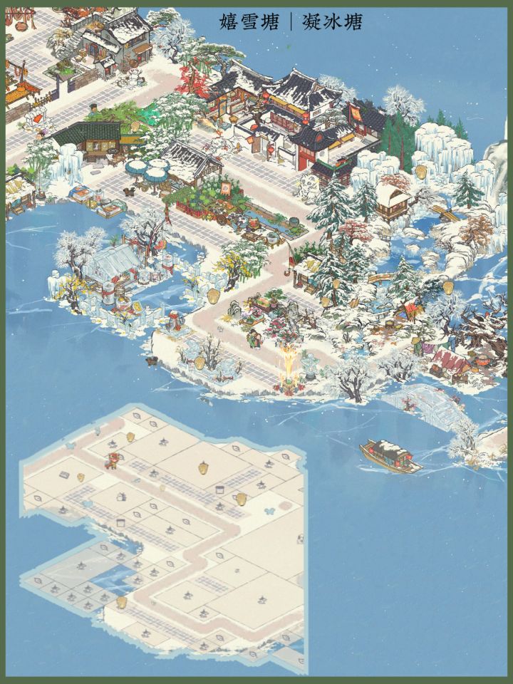 嬉雪塘|凝冰塘|清光塘全城布局之前发过啦,明年冬天再相会白雪镇 #TapTap #江南百景图 #江南百景图布局 #江南百景图白雪镇