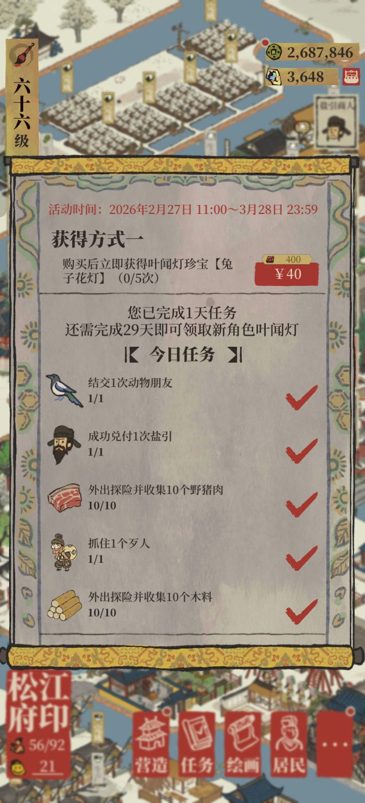 好像必须全勤做满,有点苛刻啊#江南百景图