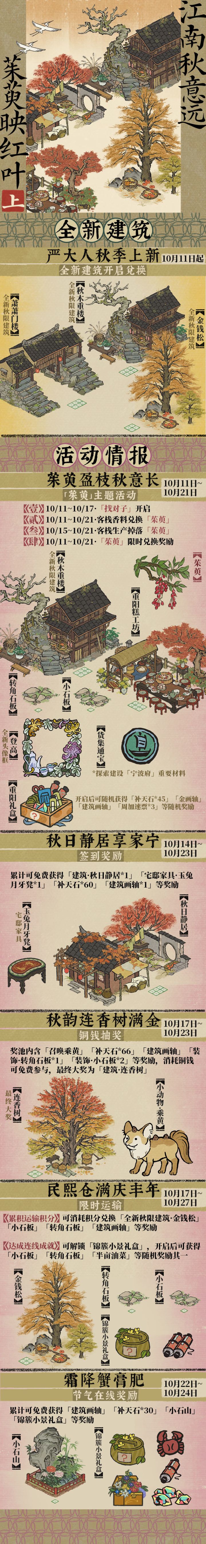 🍂严大人秋季上新,「萧萧门楼」「秋木重楼」「金钱松」等秋限建筑开启兑换!