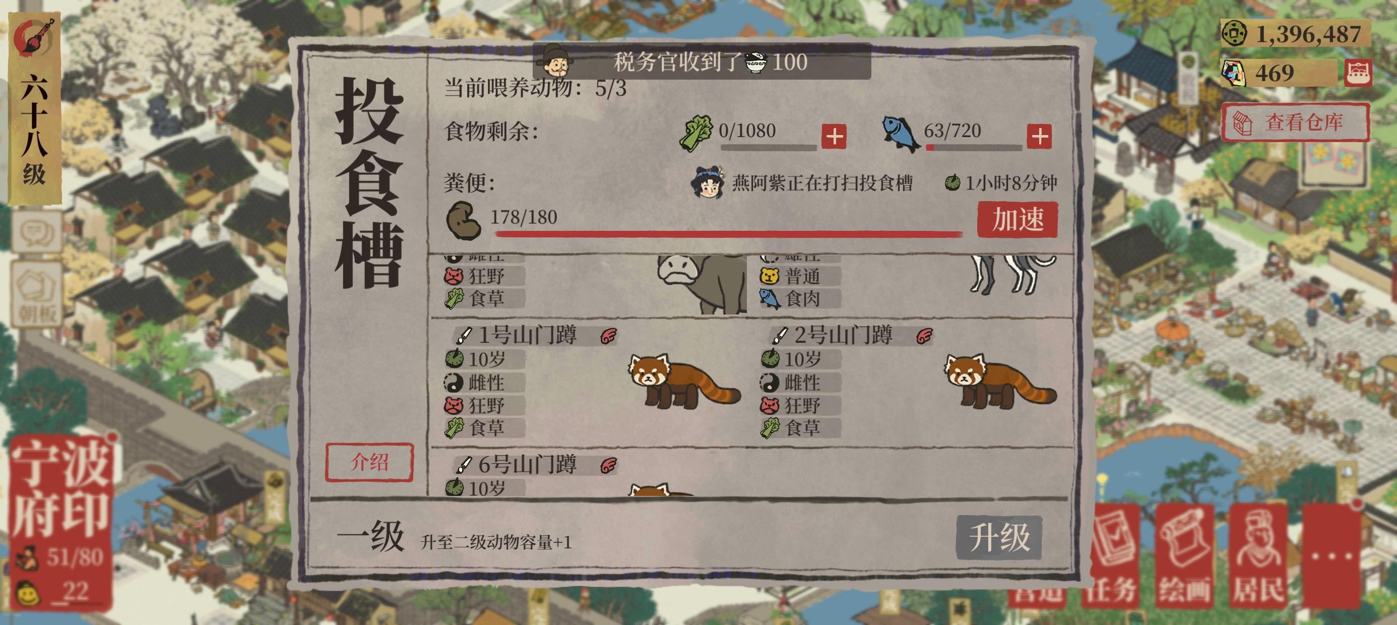 真够无语的,好几个月了,反馈半天也没解决,问就是重启😓一天天的这一栏子动物死能吃了,哐哐造啊,官方你赔我菜😠之前从应天还是哪儿运到宁波府一只山门蹲,结果后来登录一看变成6只山门蹲!直接一级投食槽就8只动物……那菜真是不够吃,来回来去运,真够费劲的。烦死了,现在变3只山门蹲。可还是很能吃啊!官方你赔我菜!!!!!!!!