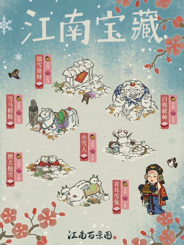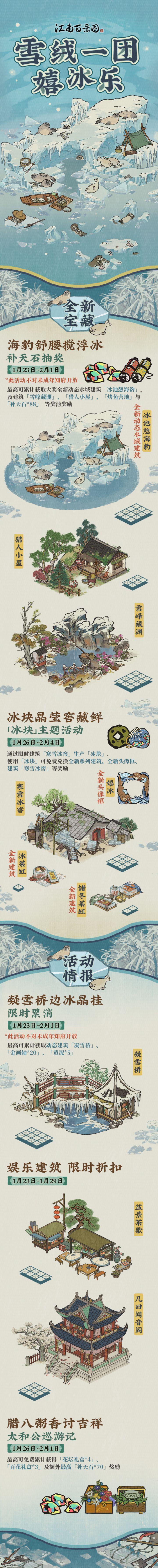 1月29日起,#江南百景图 「白雪镇」开启先行体验,知府大人可抢先前往筹备,静待热闹欢腾的「新春庆典」启幕~