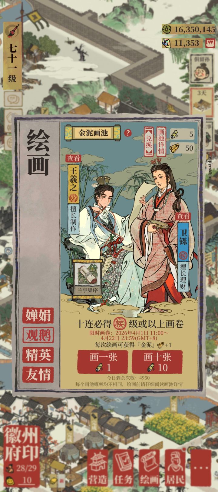 好耶五十抽成功抽到王羲之和卫铄!