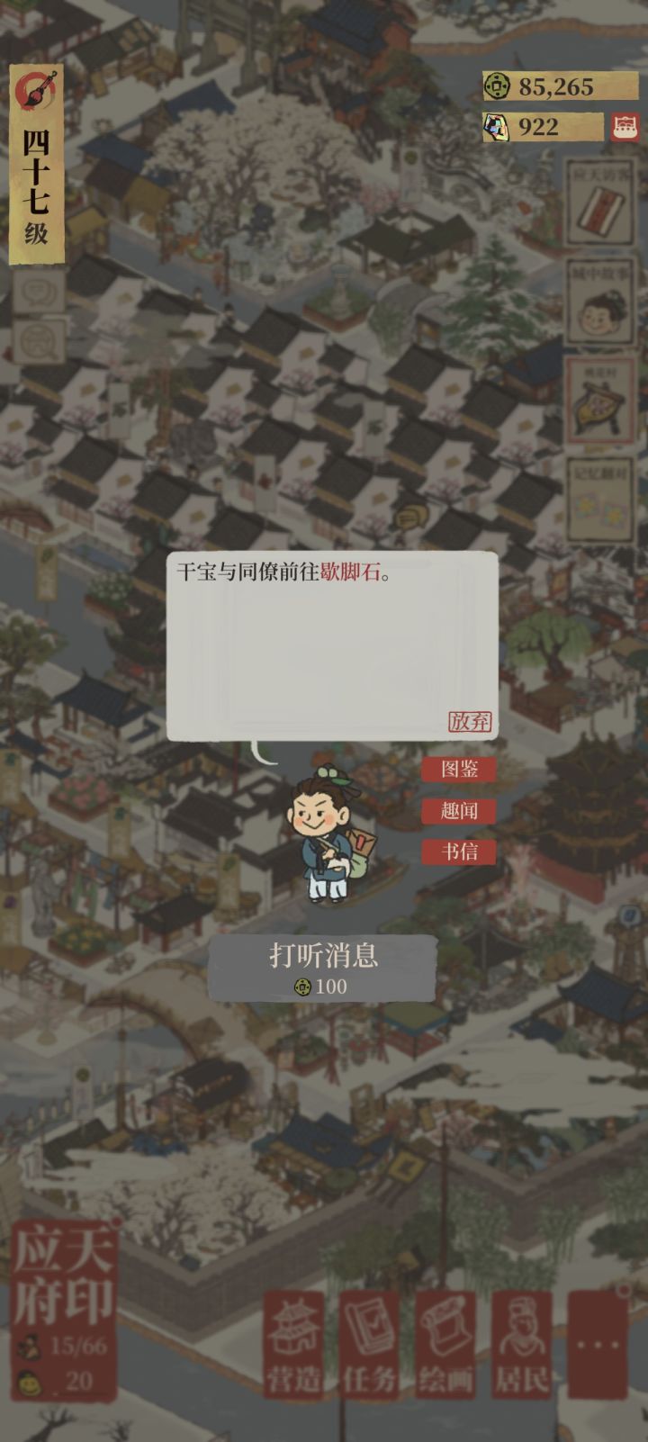 新手。不小心点进了丽娘府邸的支线,太费体力了不想玩了,还不能放弃怎么回事?为什么游戏没有一个退出任务的机制?现在我要去开苏州府,可是进不了应天城郊有渔夫那张图,每次一进去都在丽娘宅邸的任务里,也没法放弃,这严重影响了我的游戏体验。我本来兴致勃勃继续开新图的,并不想过多地玩这些冒险的支线。此外游戏本身引导也不清晰,几个选择同时开,也没有引导玩家是直接去开新城市的路线,还是丽娘支线,搞得很多人都选错