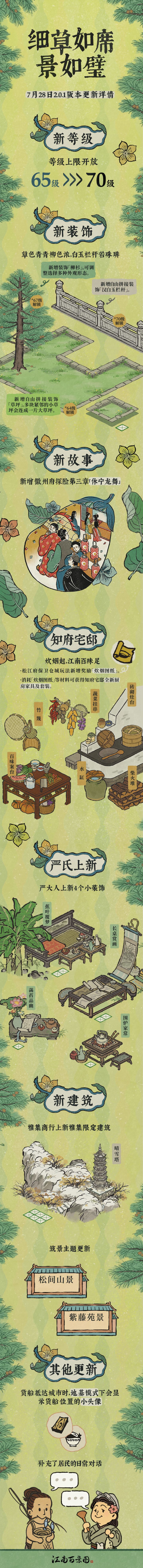 新版本将于7月28日上线,知府期待已久的草坪内容即将上线,等级上限也将提升;有关2.0.1版本中新建筑、新故事等详细内容已汇总到下方长图,还请知府大人们查看。#资讯爆料