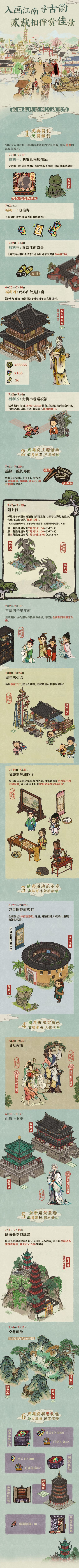 入画江南寻古韵,贰载相伴赏佳景。6月27日起,《江南百景图》贰周年庆系列活动将陆续上线,明四家限定头像、贰周年限定头像框、7月2日登录领取免费十连,还有诸多福利活动等您参与!更多活动日程详情,还请知府大人们点击下方长图查看。*徐霞客游记详情请期待后续详细预告