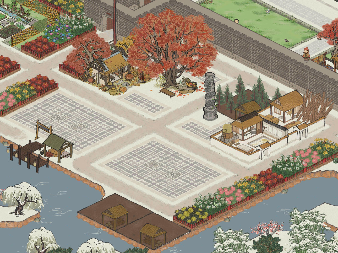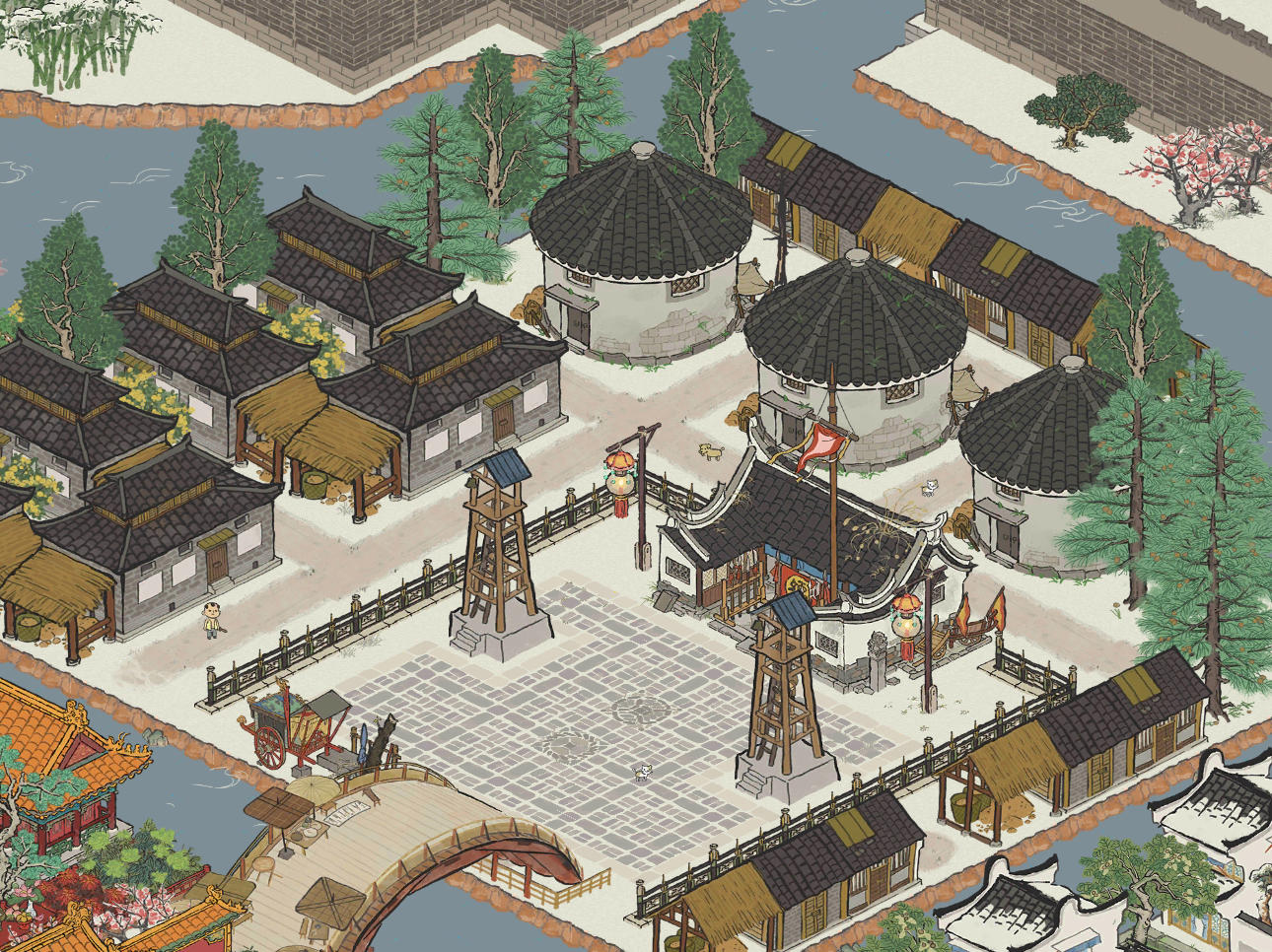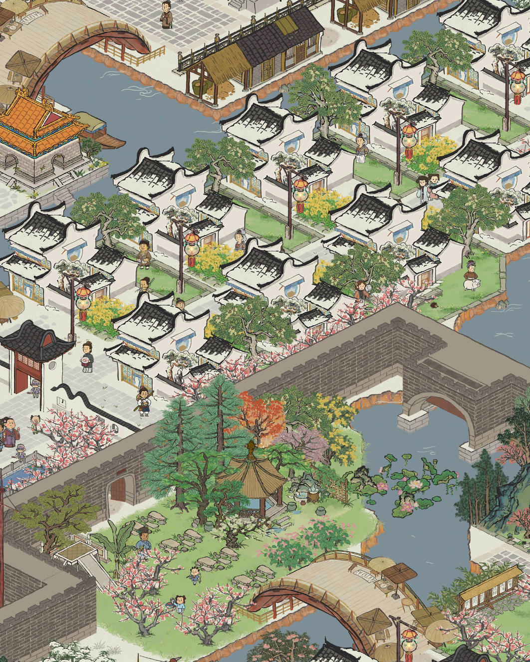 建筑:喜雨禾田、放鸢台、古柳迎春、仲夏悠居、清风亭、桃花水渠、春日踏青、义庄、语莺花市、临溪亭、璧泉垂秀、石桥花荫、月老祠、驿站、盆景园、风雅琴院、聚流亭、颜如玉、游凤画舫、水上戏台、甜品铺子生产建筑:铜矿、铜镜厂、养鸭场、餐馆、琥珀酒坊、锦绣饰坊、珍馐食肆、棉花田坐标:绍兴府·离索桥|春秋桥|运塘桥|同舟桥|渡人桥|惊鸿桥|倚斜桥|浣纱桥·全激活#