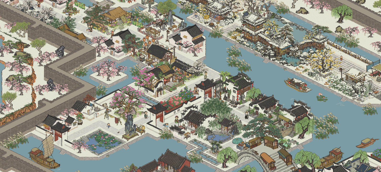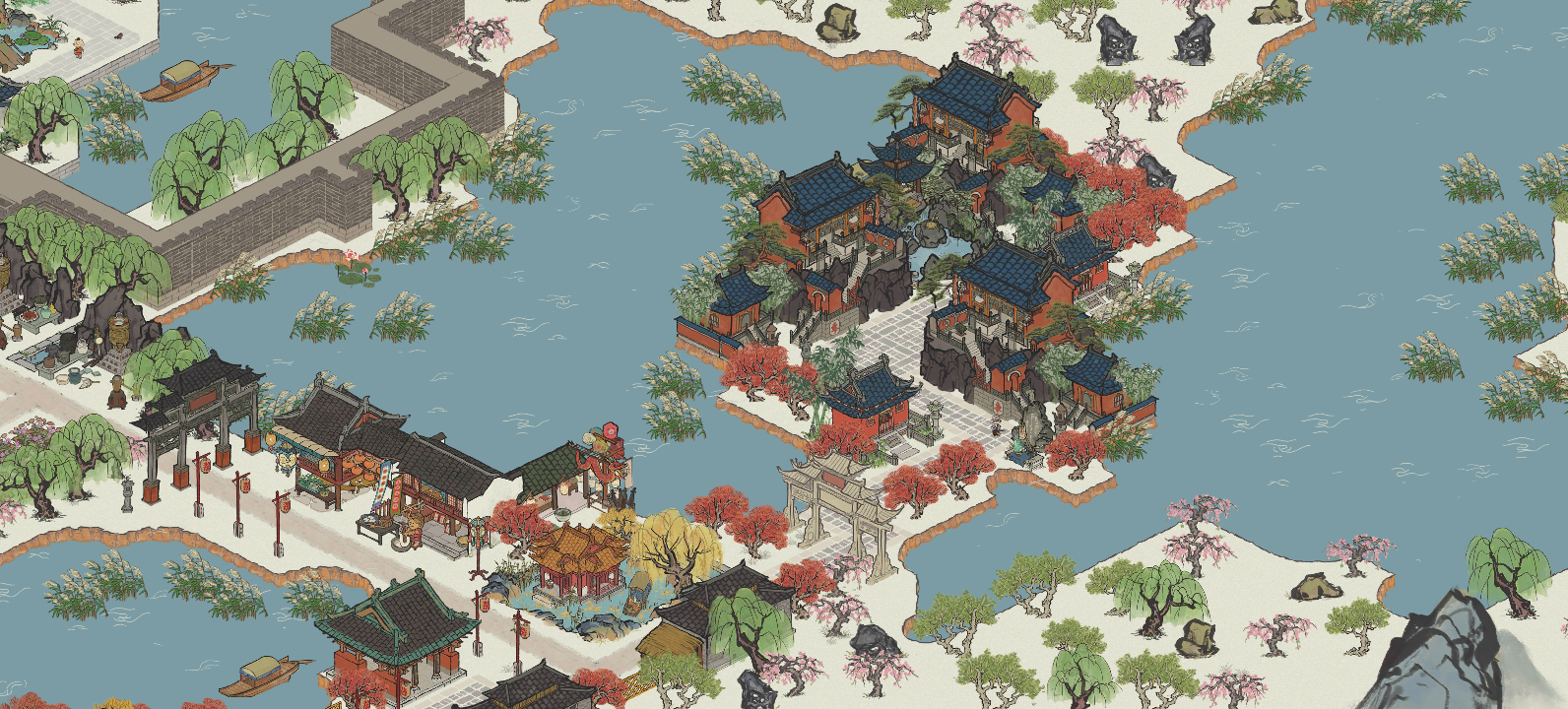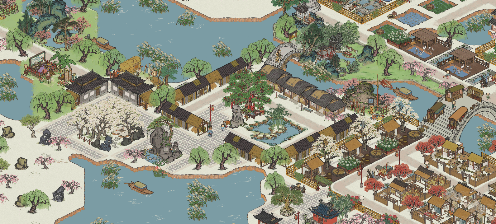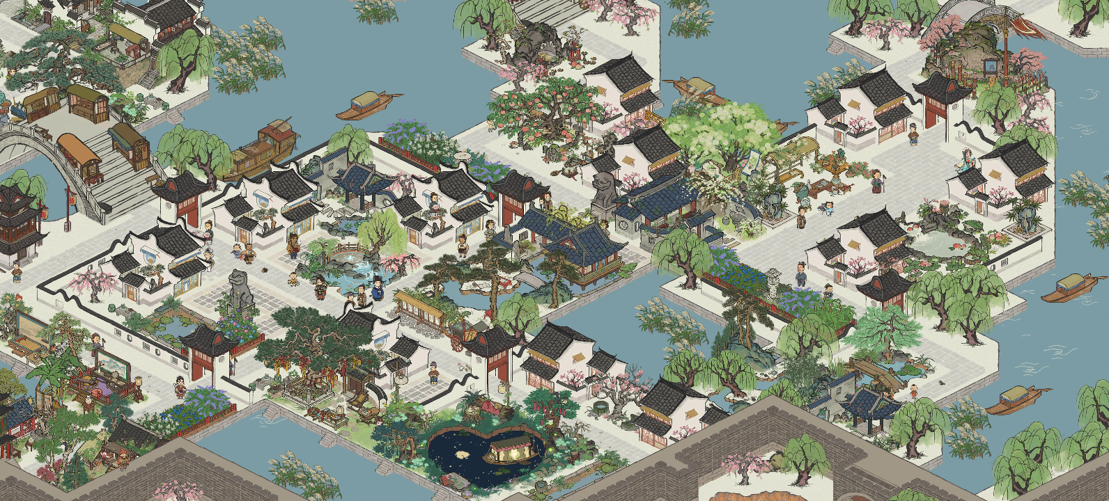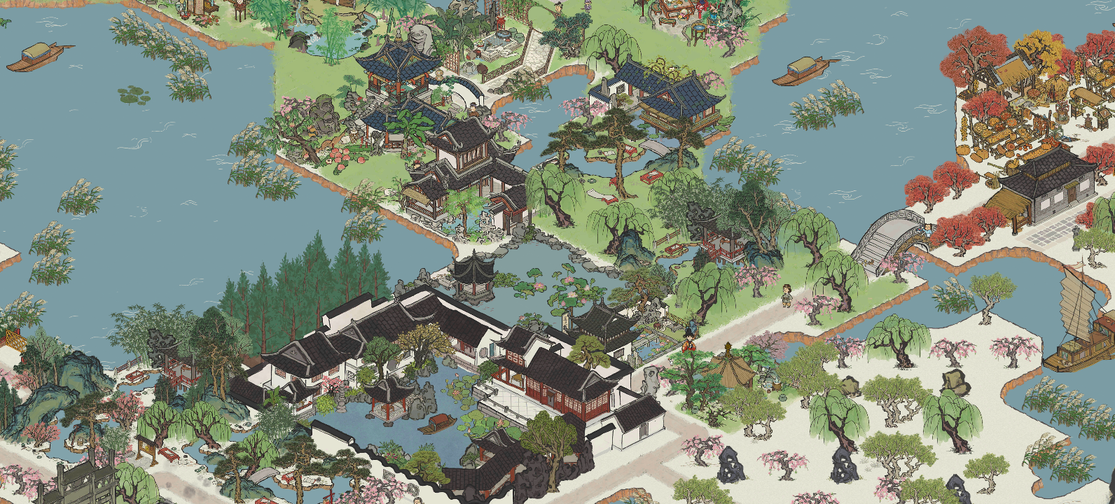 建筑:喜雨禾田、放鸢台、古柳迎春、仲夏悠居、清风亭、桃花水渠、春日踏青、义庄、语莺花市、临溪亭、璧泉垂秀、石桥花荫、月老祠、驿站、盆景园、风雅琴院、聚流亭、颜如玉、游凤画舫、水上戏台、甜品铺子生产建筑:铜矿、铜镜厂、养鸭场、餐馆、琥珀酒坊、锦绣饰坊、珍馐食肆、棉花田坐标:绍兴府·离索桥|春秋桥|运塘桥|同舟桥|渡人桥|惊鸿桥|倚斜桥|浣纱桥·全激活#