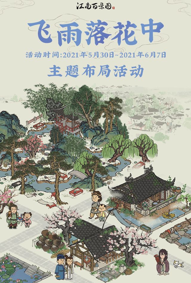 时值夏初,江南雨季如期而至,飞雨落花中,淅淅沥沥,如丝如缕,绵绵不尽,虽然出行多有不便,但这烟雨也给江南带来了独一无二的景致;知府的小镇又有着怎样的雨景呢?欢迎分享给大家哦~【参与方式】1. 以动态/帖子或直接回复本帖的形式发布你的雨景布局图(需包含雨或水的元素,如流觞曲水的小河、杏花酒家的雨滴等)2. 标题需带上 #飞花落雨中# ,内容中需注明自己的游戏账号(游戏账号请在游戏内设置页面直接