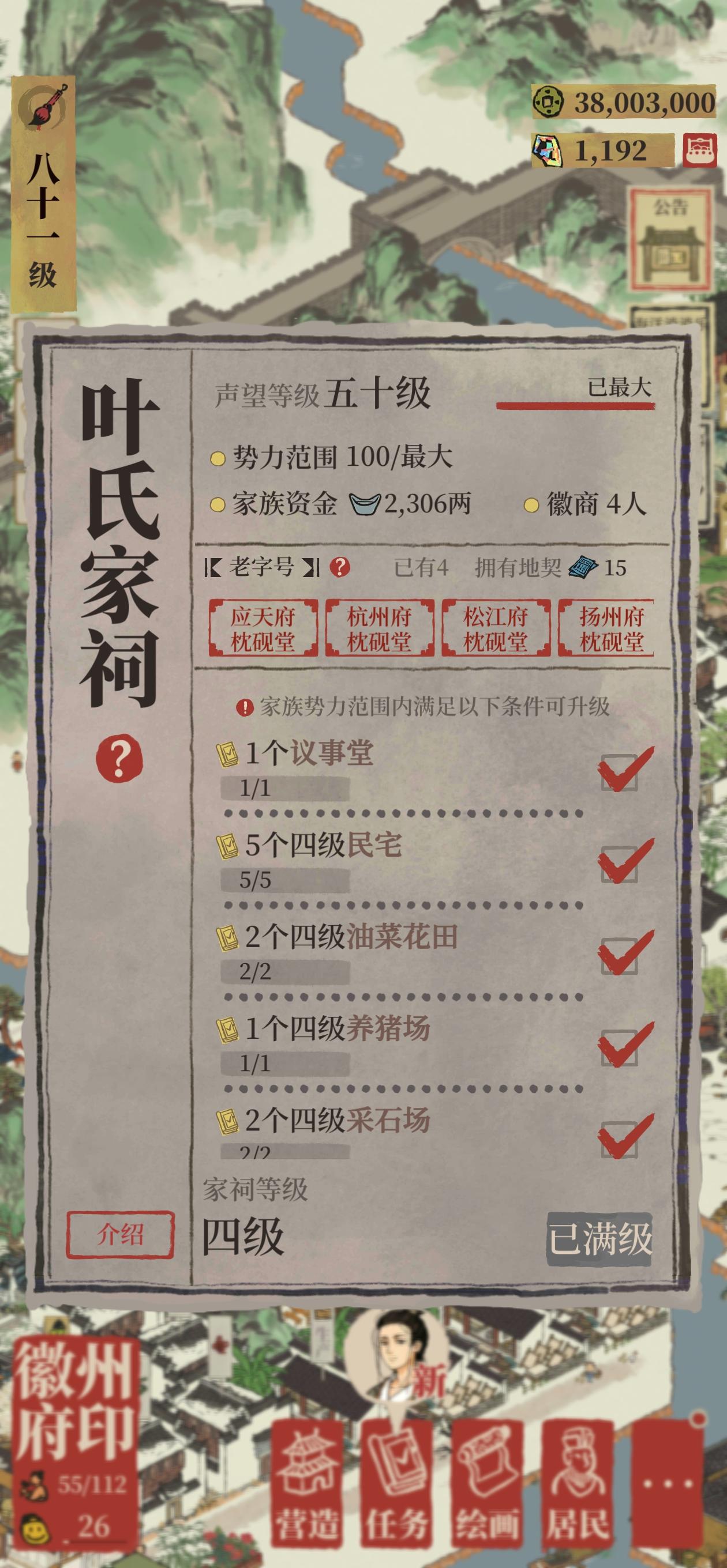 如果我现在创建一个八十级及以上才能加入的雅集有人来吗?想把雅集兑换建筑全都肝出来,需要一批物资较多稳定上线同好一起肝,不知道这个等级设定会不会太高,所以先问问试试水,大家可以投票或者留言我看人数决定要不要开或者降低等级要求,想加入的一定要留言呀不然我找不到你#江南百景图 #江南百景图雅集