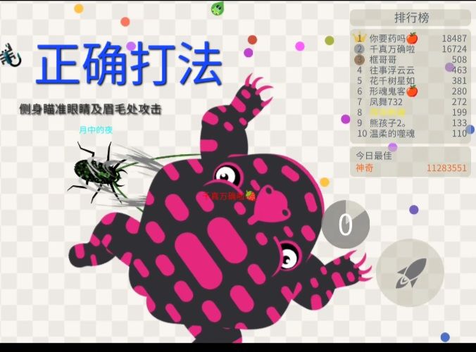 1.蜈蚣精速度太快,确实是有好处,可是刹不住车,那就完犊子了 2.蝎子有俩大钳子,两边不怕攻击,可这并不代表前面不会有事,以前有吸星大法,可以玩几百万的时候收割,不过已经没了 3.个人不建议玩小僵尸,判定和蜘蛛差不多迷惑 4.蜘蛛前期不要变成蛇,后期等几十万了,就变成蛇慢慢把地图框起来,秒杀就手到擒来了 5.其实如果运用好技能,甲虫前期狼人都可以杀,只要打的准,前后期都很强,可是长度刷的很慢 6.