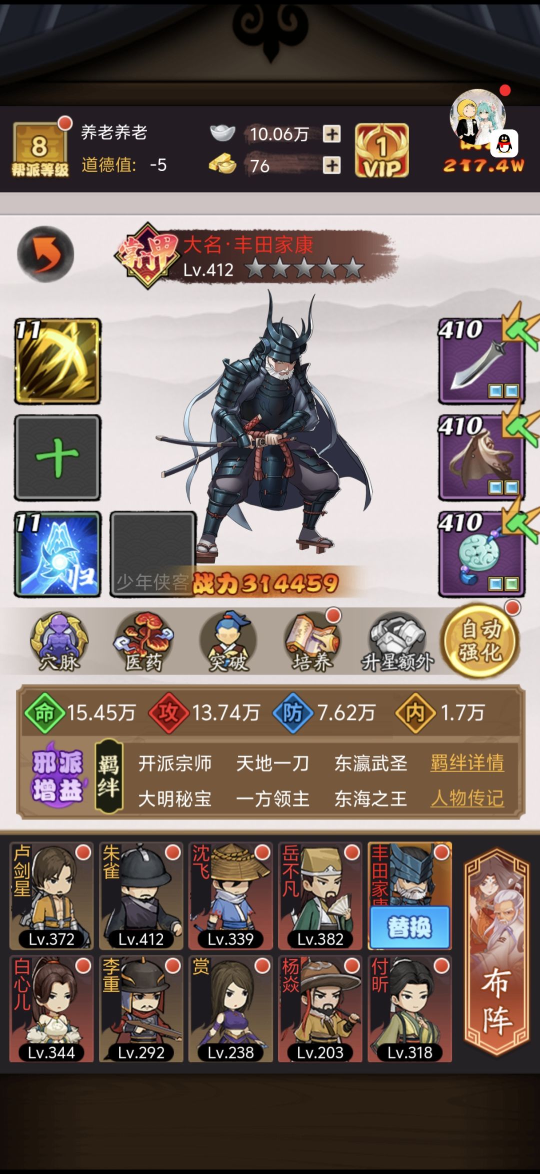 简单玩了不到两个月,心血来潮想水点字。本文仅对新手有帮助,老手可以略过,可能会浪费你一些时间 1.关于生产 邪派和正派的生产事件不一样,但都类似差不多,任务派遣减少生产时间和减少遇时间概率的弟子,大部分生产事件都是会+银子或者知名度,为了压级,尽量不要做事件,邪派为掠夺城镇加钱最多,因此我们可以吧立即生产的次数都用来点到上面,具体为生产事件先只提交掠夺城镇,然后点立即生产(按住或者连点器。强烈建议