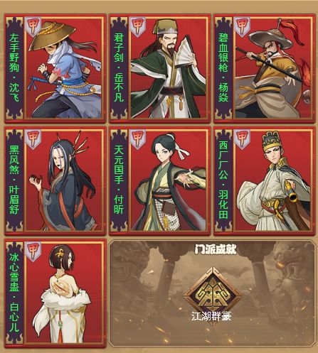 对于群豪红甲弟子,通常认为只是过渡弟子,后期阵容里很少能见到群豪,最多偶尔特别喜欢蛊虫的会把白心儿放在后排补一下伤害,也有喜欢阎王愁的把雨化田放上。对于氪金土豪,往往早期就能凑齐掌门的十人阵,所以群豪的存在感非常的弱,甚至很多人感觉群豪不如乙级弟子。 其实群豪作为货真价实的红甲弟子还是能享受到功体堂的高额百分比加成,只是相比掌门,一是无法闭,关少了一次成长的机会;二是羁绊数量上要少一个;三是羁绊质