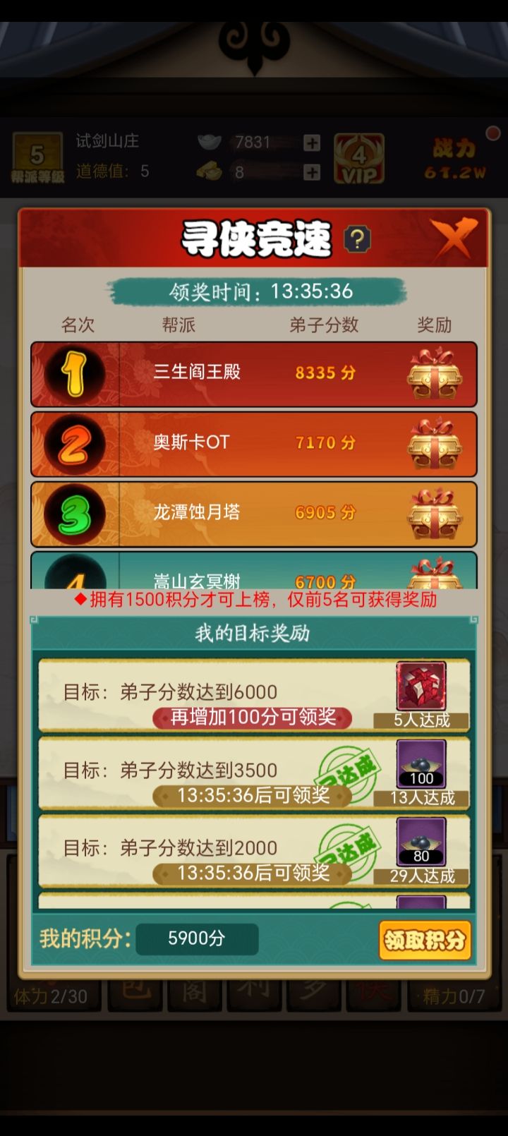 脸黑到没边了,总共7个甲,就两个掌门,有一个还是邀请的,然后寻访分数5900,能整的办法都整了,没招了