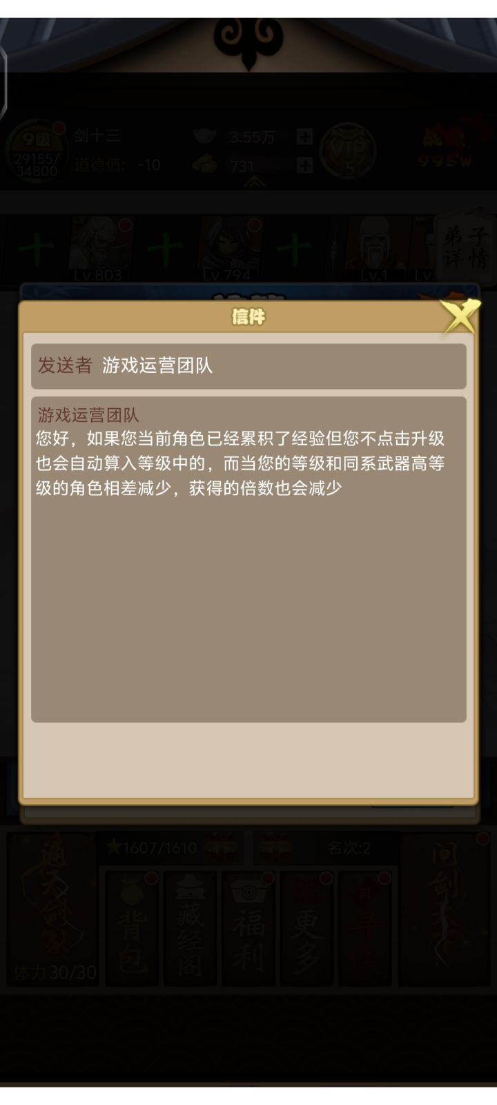 如上图所示,现在不点升级但实际获得经验会实时转化为等级,达到阈值将无法就获得相应经验倍率加成(比如将两个同系相差200级以上弟子上阵打桩,如等级较低弟子内置经验等级已与大弟子相差小于200级将无法获得50倍的打桩经验倍率加成) 官方这一行为究竟是为广大玩家着想,还是游戏已经无法做出创新,从而拉慢游戏节奏?