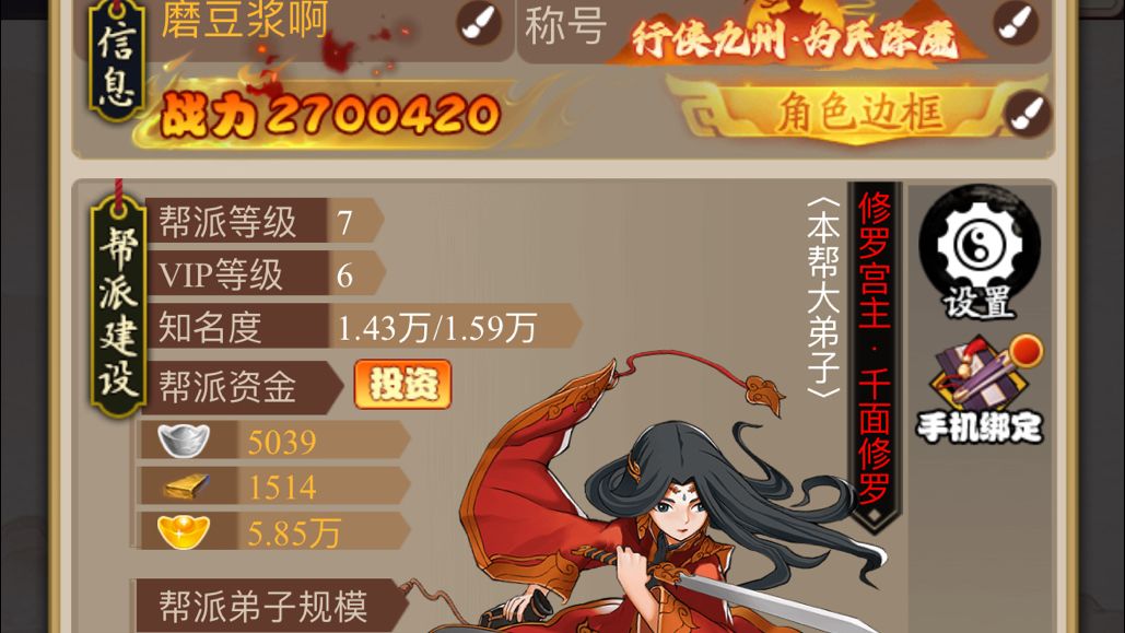 记得是三年前开始接触这个游戏,从小一直有个武侠梦,第一次接触这个游戏后,眼前一亮这不就是自己一直梦寐以求的江湖梦吗,侠客的获取难度是最吸引自己的,抽到自己喜欢的角色能激动一个月,抽到后立马就冲钱,198起步,稳拿排行榜第一,那种成就感真的很满足,坚持玩了一年多,这是我玩的最久的一个游戏,游戏虽然内存很小,但是做的真的非常到位,游戏玩法也是丰富多彩,上个月看到有新版本就从新玩了,我在剑侠2051服,