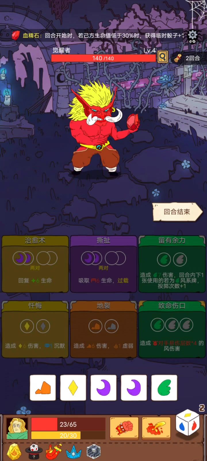 一个水属性加2护盾,四张同属性给对方上负面buff,要不是有无敌一回合就给他秒了