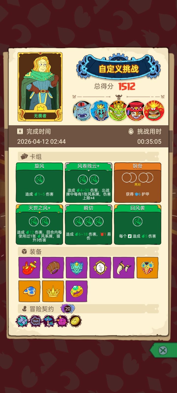 歌颂者大师模式还是有意思🤪唉唉保留骰子,前几回合靠挨揍回盾和挨揍回血硬抗,刷个五六回合刷出7-8个光骰子,刷的同时打暴击卡配合挨揍伤害翻倍道具叠双倍伤害层数,中期回合用圣光球回血,到后面双倍伤害层数6+,再上易伤,靠全力一击或者群星闪耀收尾,屡试不爽(我们大师歌颂者还是太有操作了)一炮上万😃