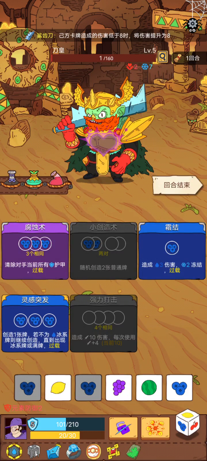 可惜碰上了左边不死怪,右边带反伤的。只能用药了 理论上,贪婪是唯一一个可以初始牌打15血的人