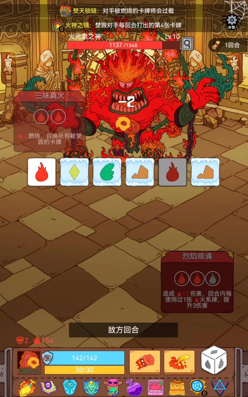 1.有一张特技正好复制了三昧真火 2.正好卡三昧真火为第四张牌,被焚毁 3.有火焰铲 4.对手只剩下三昧真火能出 就这样,因为燃烧效果下一回合才生效产生不了伤害,火神只能出三昧真火循环了,就这样看着火神一点点被火焰铲刀死[表情_微笑]第一次卡出这种循环