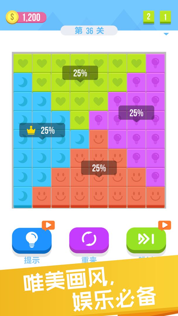 进击吧方块是一款非常有创意的放置类休闲游戏。游戏中玩家需要手动放置方块到沙盒内。放置完毕后,颜色各异的小方块会向前后左右四个方向扩散,直至无法继续扩散。最终根据各个颜色在沙盒内扩散后的占地比例来判定胜负,占地面积最大的颜色获得胜利!游戏简单易上手,休闲解压更轻松!