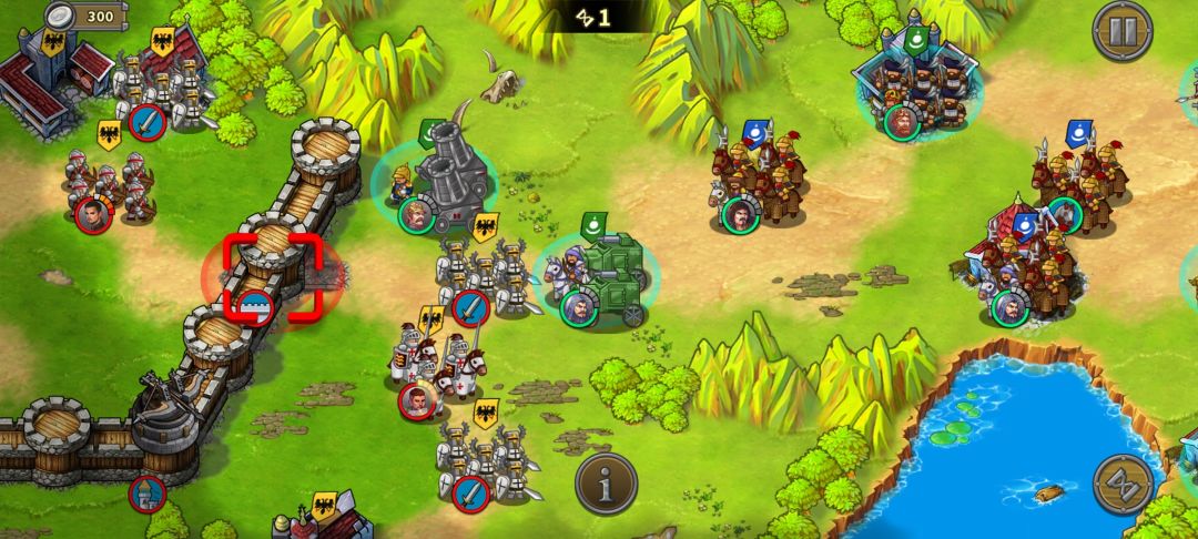 骑兵试炼终于毕业了,这5个人够用了 黑太子幽怨的小眼神~~我就不养你(ಡωಡ) 配置: 三个完全体 两个非完全体 两个核心输出,三个指挥官,黑太子不需要。不得不说萨拉丁带不带专防完全就是两个人。 思路: 19回合的形势图: 上路: 不需要人,开局在上面红圈放步兵费用—50%公主,在下面狼支援之前造步兵守住。 狼可以出来之后直接占上面红圈,狼有掠夺和奶瓶没有压力。 打掉几个无名将之后会有几个回合没人
