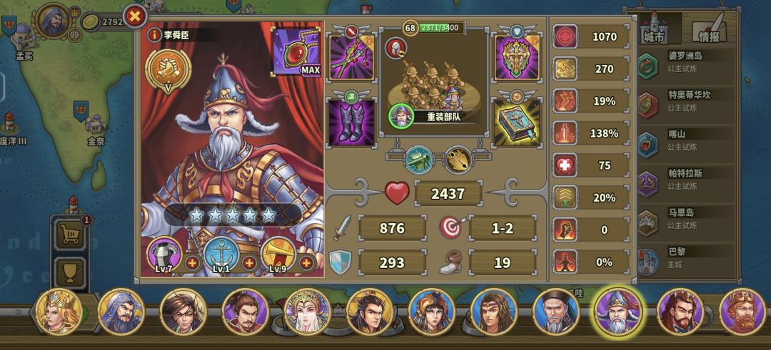 其实这篇帖子原本是写炮7攻略的,里面顺带写了装备分配,不过由于拖延太久搁置了,今天看到各位大佬的发帖,手痒痒了,改下标题发了吧,啊哈哈。 我只有5个炮,其中3个6星的2个7星的,好在我的装备很强(自嘲下,天丛云都没有也敢说强?),已拿到所有高级装备和战役徽章,特别是国王之证100攻击呢! 一、装备搭配 李世民,主力输出,七星反伤100%,别看李世民血多还有后勤,实战中李世民被反击掉血很快,后勤根