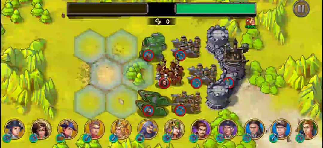 工具人站中间抗伤过渡 炮在后输出 两个射 一个杀人回血 一个奶瓶续航 站前两遍 抗少量输出 留个肉的主力 步或者骑 最后回合抗伤害 这样打一般最后一回合都是满血状态运气不好就是这视频样 运气好 到宙斯 直接永恒技能来了 一个暴击全没了