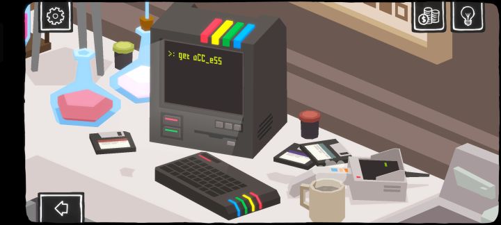 而且游戏的UI直接隐藏在游戏里,一进去就是游戏房间都没有开始选项,成就系统都藏在房间的奖杯里非常有意思。游戏里面还有一个游戏机可以玩一个考验反应力和手速的小游戏,对主线没有任何影响,但拿到三百分以上可以解锁一个成就(dbq我拿不到)