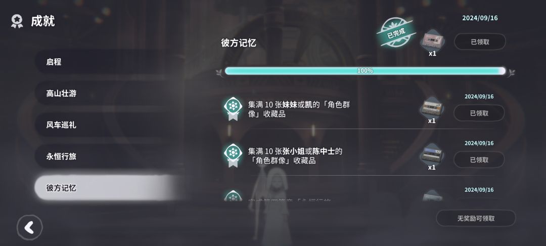 主线通关后成就,按照条件慢慢购买即可 获得物品可以去彼方的床上播放