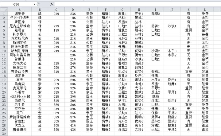 1.后起之秀谢里登属性爵位:和皇叔差不多的能力,高于一般绿将上线也有皇帝。技能设定:有四个技能,平均质量也不错,只有一个明显的废。购买推荐:美国内战的重要将领,理论上来讲,上限非常高,穿透也是后期的强力技能,不过作为绿色来说,他并没有多少获得资源培养的机会,如果不是后期喜好打历史,建议不要培养。2.军事史学家伊万-菲切诺属性爵位:绿骑中成长和基础最低的,无亲王。技能设定:只有3个技能,