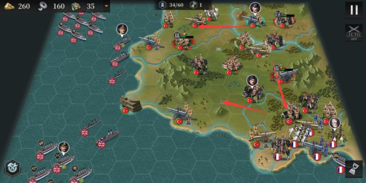 各位指挥官大家好,今天给大家带来历史模式关卡攻略思路第三期,欢迎大家一起留言讨论~历史关卡五:第十次俄土战争总体思路:挨个占城,最后渡海占下最后的四级城。同时升级城市,建造大学提高每回合的知识,多使用策略卡爆破和间谍。开局先尽快占下左边临近的四级城,让友军早点参战。用装甲车良好走位配合两船两炮的轰击,在第二回合占下四级城。占领后,拆除这座四级城的马厩,升级这座城,为的是在海边建造一个大碉堡。再
