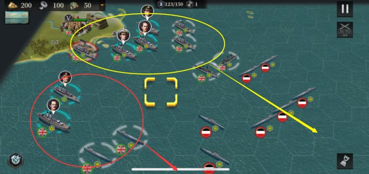 各位指挥官大家好,今天给大家带来历史模式关卡攻略思路第四期,欢迎大家一起留言讨论~历史关卡七:日俄战争本关卡初始部队都在海中,海军需要保护步兵骑兵炮兵上岸,所以一般在第一波陆地兵上岸前,要求海军尽可能不触发对面的反击来清理阻力。本关卡可以不上将,使用初始将领来通关。如果入了日本将领包的将领的,可以多培养东乡,带两个望远镜以提高输出,或者替换一个为马车。大山岩可以培养到公爵,洗个战术精通,带2