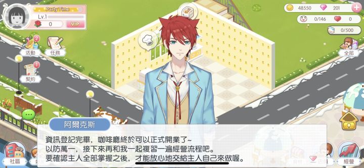 优点——里边玩家都很友好也不会欺负新人,有问必答。角色支线做的挺好的也很符合人设。可以给他们换衣服饰品房间的专属家具。钻石很好攒,还有免费的抽奖券,福利蛮多的。也可以装扮咖啡厅,抽取家具也有对应的免费券,也很好攒!咖啡厅局内有角色Q版形象。适合佛系爱经营的玩家,不氪金也能玩下去只是会节奏慢一些。