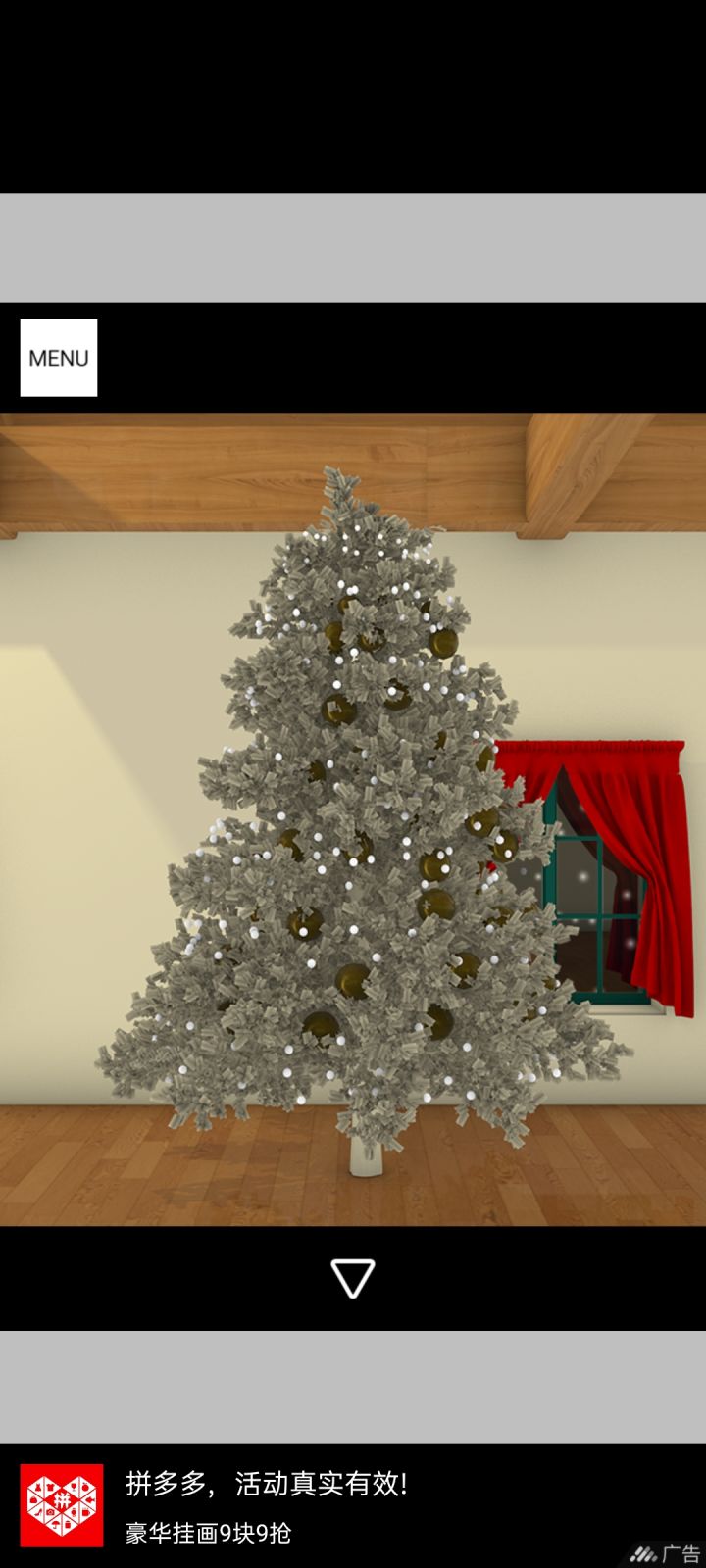 移动到这个场景点击图中开关打开电灯点击球桌拾取球杆,点击黑球得到提示黑8点击雪人肚子得到提示橙5点击拾取图中装饰球盒,把球挂在圣诞树上,点击放大得到提示黄1,放大剩下的空盒得到火柴盒点击窗子处得到提示红3,将提示8351输入钟下的密码盒得到紫色球12点击钟表得到提示12:25,更换场景点击老式电视调整旋钮H对应12,M对应25,调整后得到红色雪人把红色雪人放置于书架的字母空缺处,根据