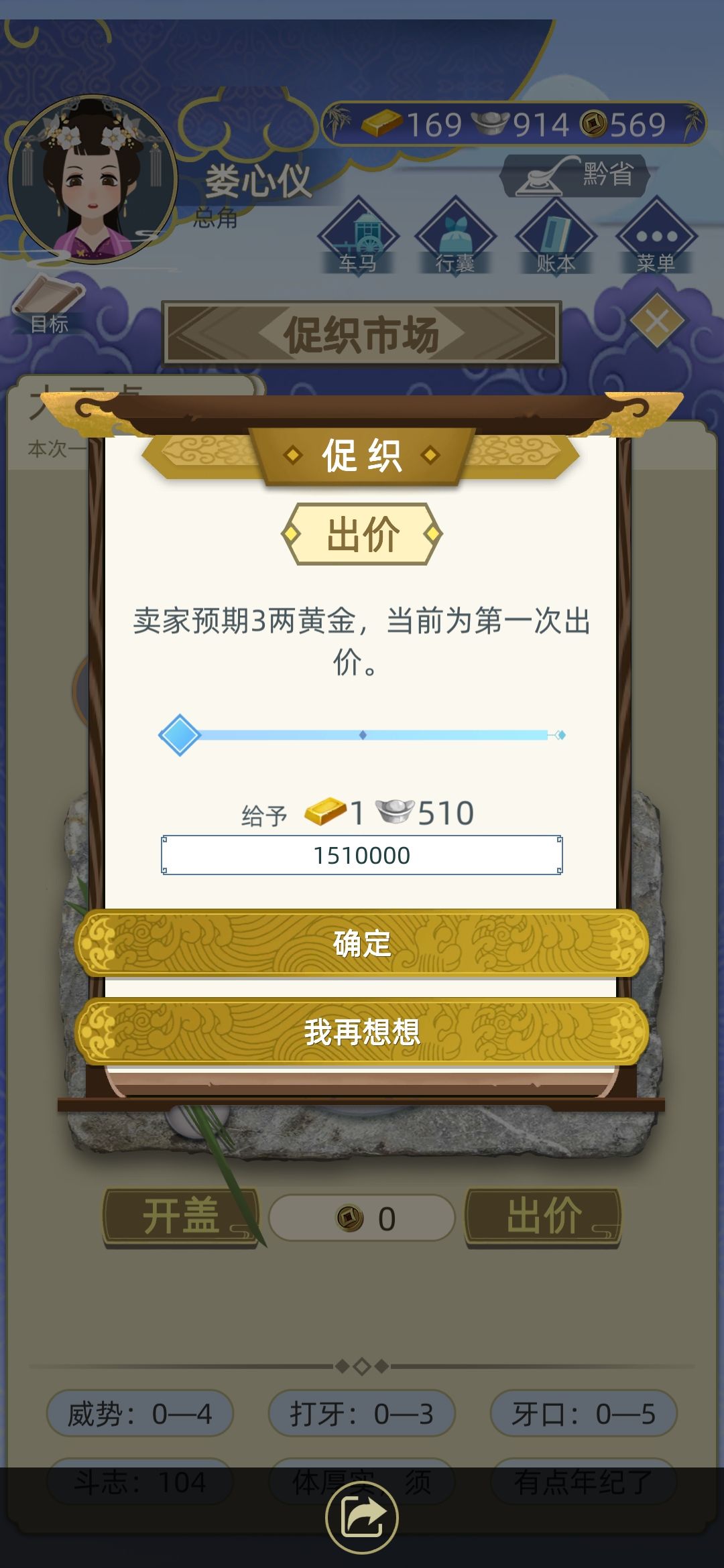 有一世沉迷斗促织,考上了状元也把官辞掉了,整天游手好闲不务正业,靠着倒买倒卖促织和斗促织发家致富,来和大家分享一些经验。 从挑选促织开始。一开始抓到一些高品质的促织之后卖出去,有了一定资金(有1~2金左右就可以开始了)之后就去促织市场摆桌子买促织。我一般摆一百两的大桌子,卖家出价1金至4金的一般就是二品的促织,再往上走10金左右甚至20两黄金的就是一品的。关键是要跟他砍价,他要价1金你就出510银