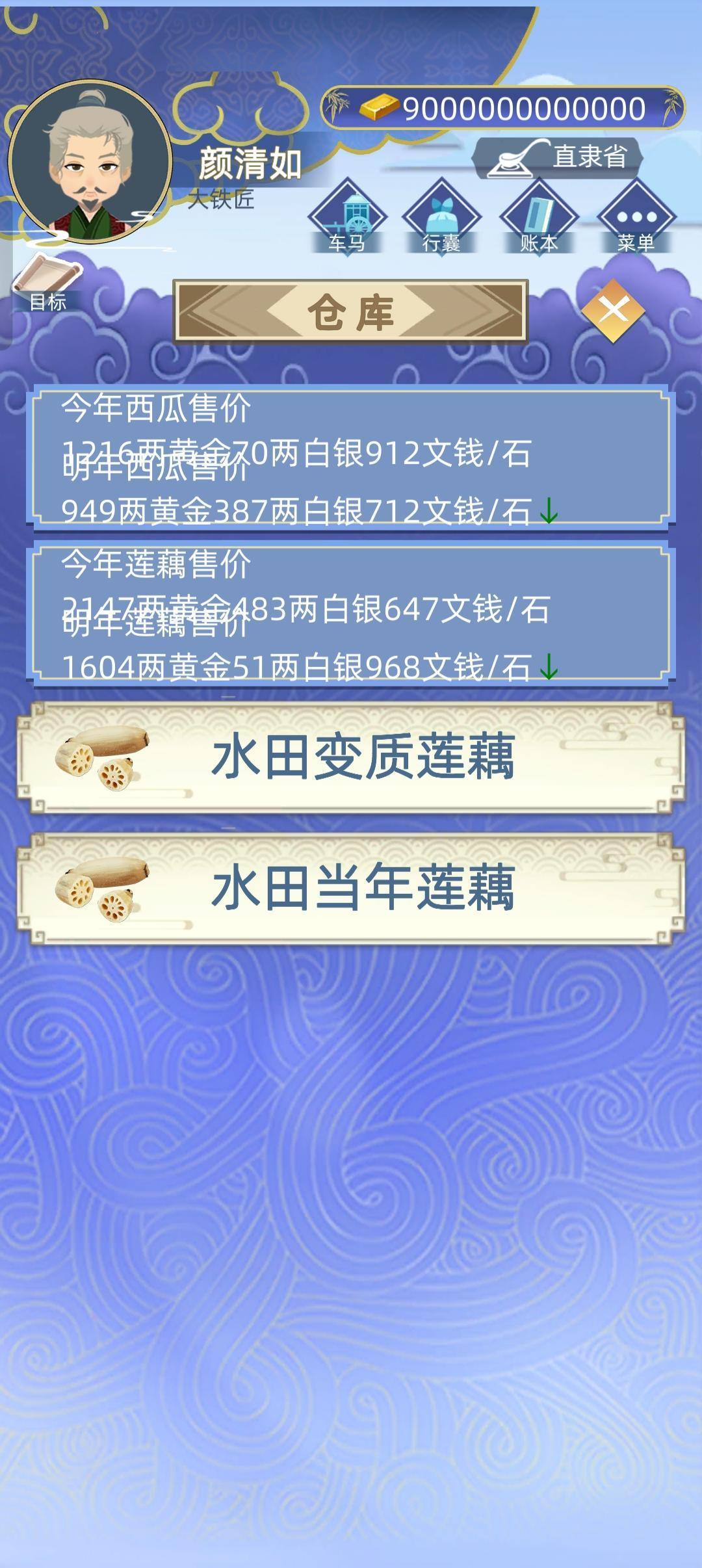 目前除了卡赌博bug来钱最快最多的方法,而且相当一些机型已经不能卡赌博bug了,可能压粮价是最后的出路。话不多说,攻略奉上。 如图,压好的粮价是图中这样的,最高价格是2147两黄金483两白银647文钱。 操作方法很简单,买地,种地,每年都种同一种作物,且每年都要收获,不能漏收忘收,这样粮价每年都会自动往上涨👈🏻👈🏻👈🏻。注意⚠️,千万不能在没收粮食之前点进仓库,因为粮价会断崖式下跌(此处加黑加粗