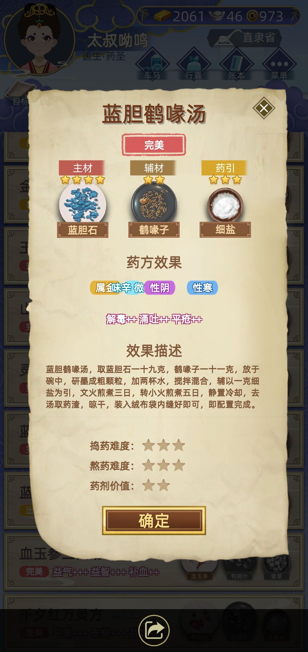 最多三个效果优先级是:主~辅~引 比如 然后对比一下。2星没有【平疮】 这是辅料和药引。 药引可以用来去除负面。 结果:完美药方是浪费,只是发挥了主材 出众方用辅补了一个驱虫 然后是结算+号的时候的问题 宁和安:主+辅4宁,3安,引1安 效果: 3宁2安 可知引只能做补充,不能直接被算入,或者说效果打折 熟用这个特性,就能更好的发挥好辅材的效果,以辅代主也不是不行
