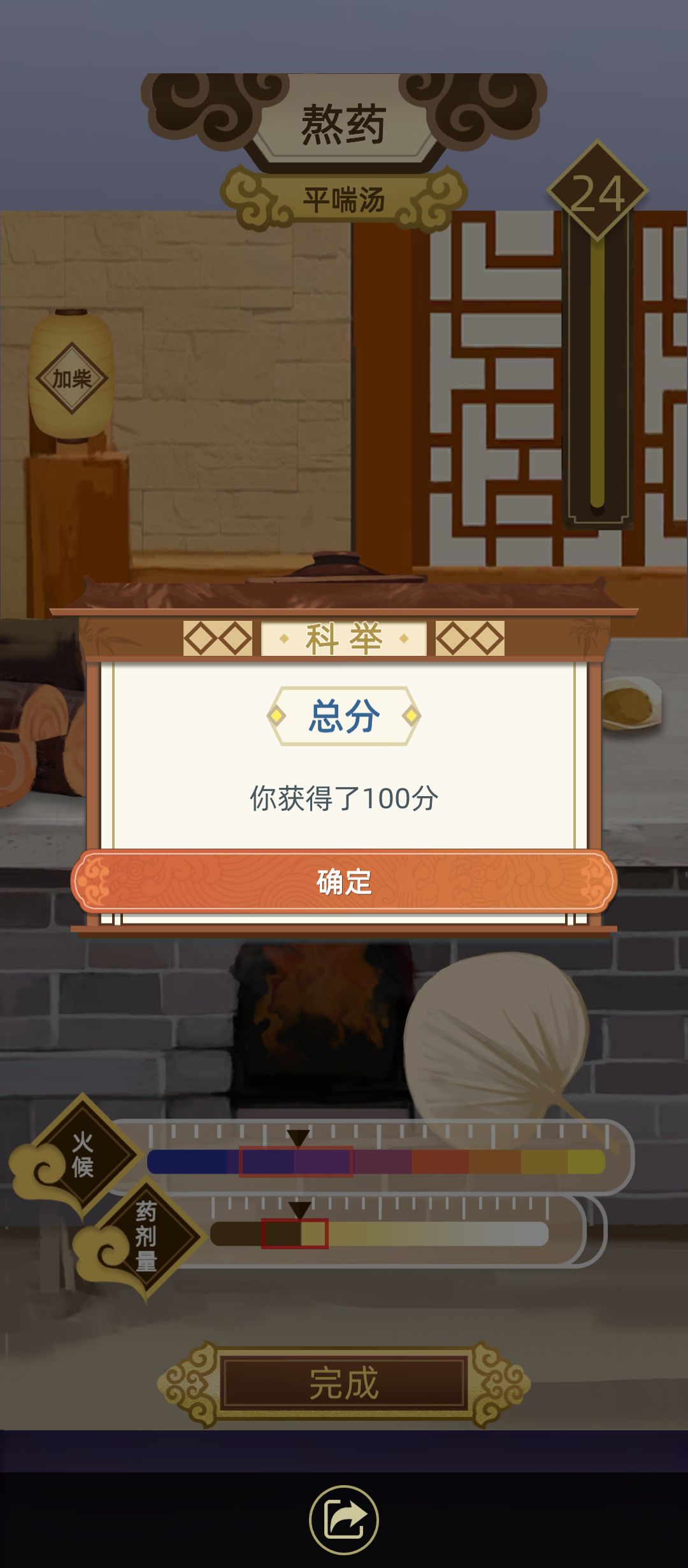 制药攻略 淘药的步骤要尽量保证粘稠度与药剂量都最终在给的红框的中间,药剂量可以在中间偏右因为淘药中最后的药剂量就是熬药中开始的药剂量,加水大幅降低粘稠度并加上很少量水,加药大幅提升药剂量,而熬药中的加柴是降低火侯但可以提升火侯提升速度,然后保证火侯与药剂量都大概在红框中间就可以拿高分