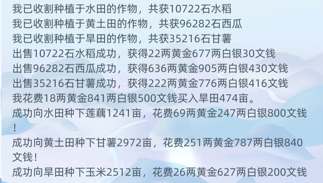 黄土田,旱田和水田后期是真来钱,特别是前二者,就是缺好田,导致上千黄金全在手里攥着