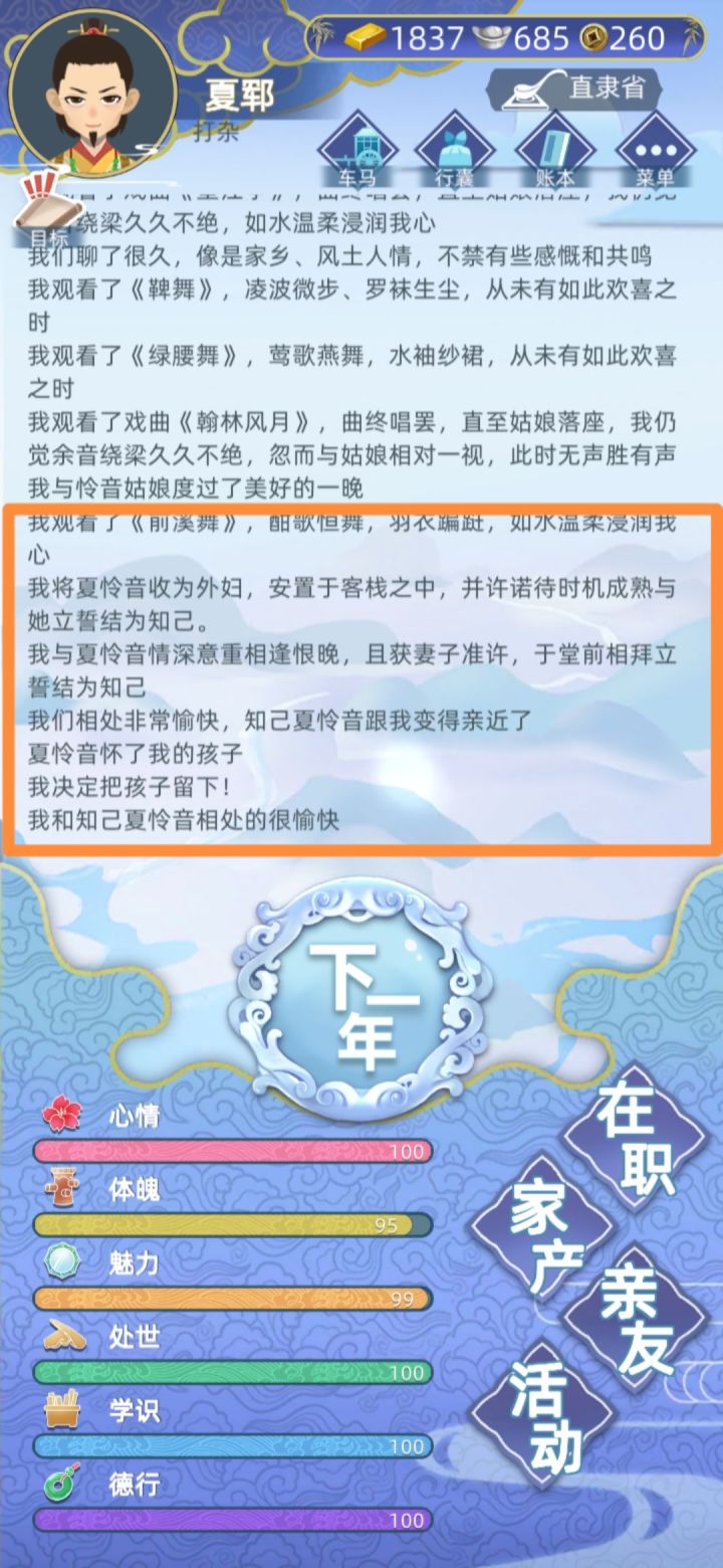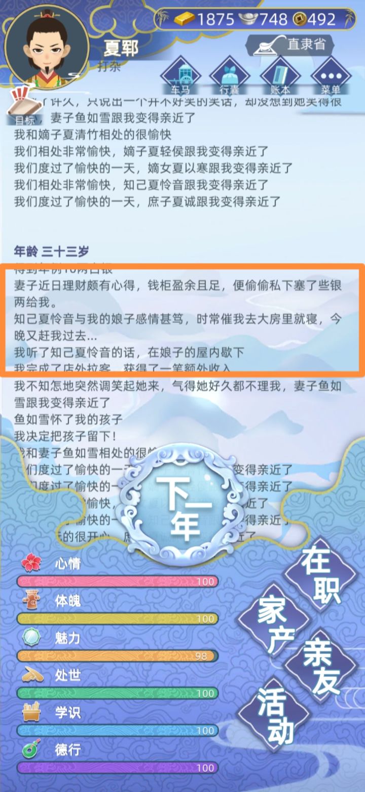 只要开局把税收拉满,我们不用管安居乐业,保证能完成朝廷下发的其他任务(在百姓眼里估计是个昏官,不过咱不贪污),只要完成部分任务,朝廷不会降职甚至会升官(毕竟他们只看税收)——————————————————————————我真的忠君爱民,鞠躬尽瘁,不然怎么会升官呢?