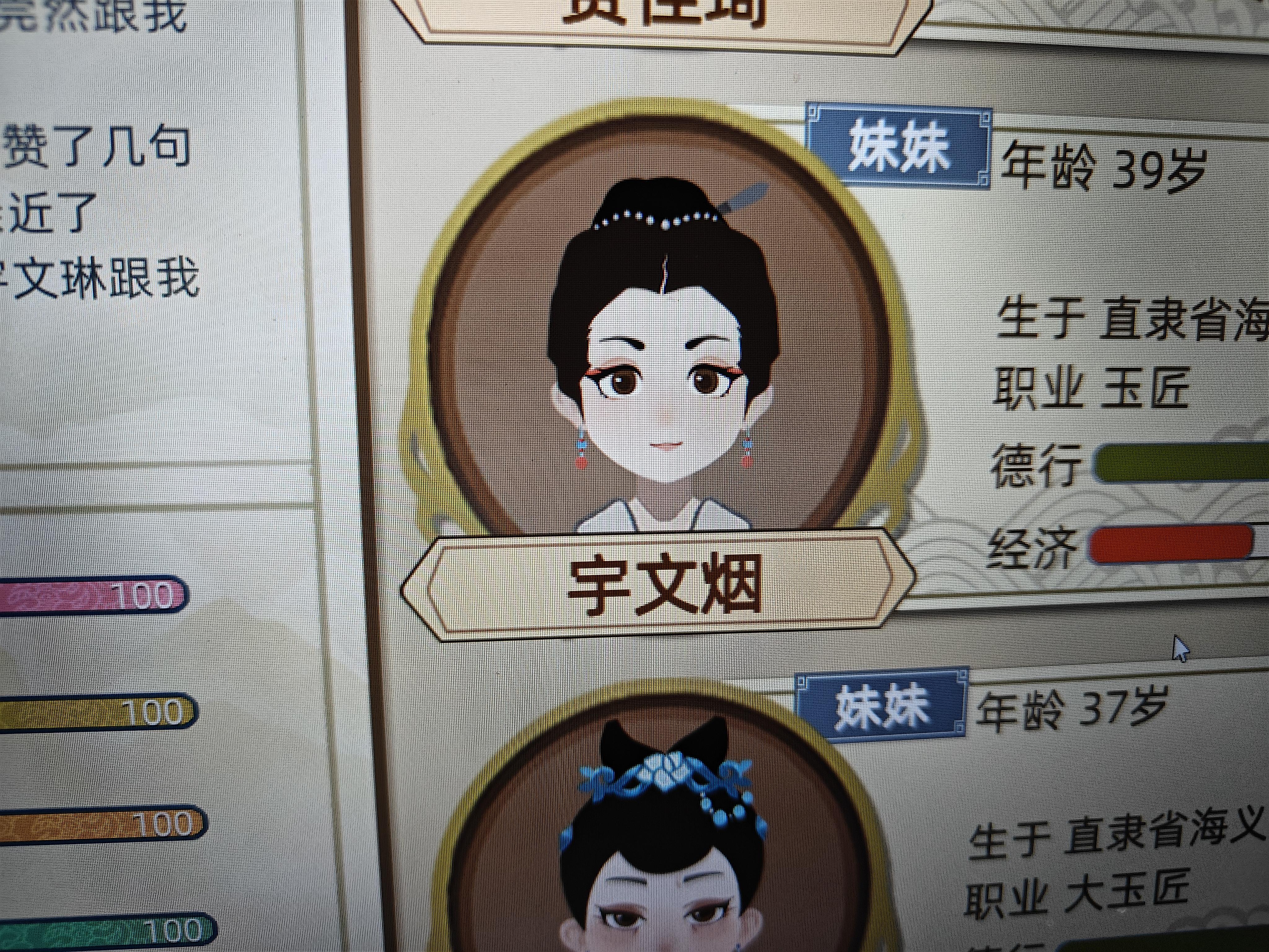 这个角色我就一直佛系玩,每年都以为要去世了,结果把丈夫熬没了,二儿子早逝,大儿子儿媳也早逝,孙女嫁了个超级丑的孙女婿还生了个女孩……终于在104岁寿终正寝了。那个骗人的道观骗了她三百两白银,结果丹药没有用。做闺塾教授能做到年例754两应该蛮罕见吧,也记录一下,全靠活得久。