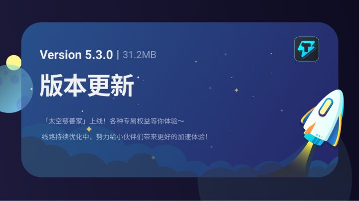 各位亲爱的布斯特号船员:冬去春来,万物逢新,Tap加速器也迎来了新版本的上线。这次,严肃又活泼的狗子带着V5.3.0和大家一起看春天的第一朵花花🌹话不多说,来看看这个新版本都有哪些内容~【太空慈善家】船员们,Tap加速器决定在V5.3.0推出“太空慈善家”充值会员。成为尊贵的太空慈善家,不用看广告就能享受全球电竞级高速专线,还有专属技术支持为您答疑解惑!我们还为太空慈善家准备了一批船!新!