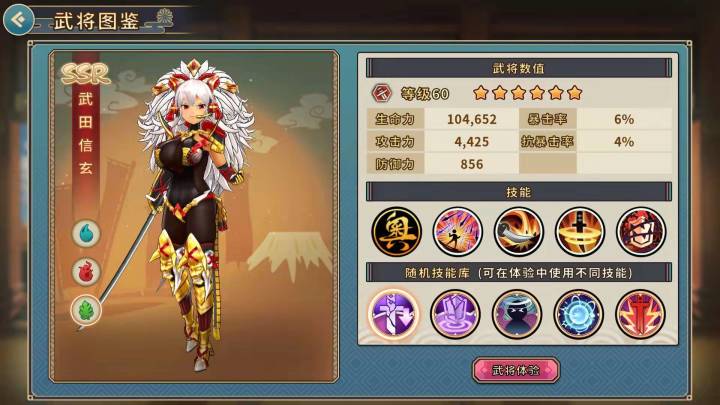 笔者玩了快一个月,在修罗难度还差两话通关,基本上都有些了解。总想说点什么,好让这些经验分享出去------下文仅代表个人见解,如有误区请不吝指正一、斩系武将SSR新免无二被动:减30%能量消耗1技能:跳斩4下,施展速度快,我一般用于推图时清群聚的枪兵、弓兵,丢完就跑2技能:左右开撸12下,关键是施展时自身不能动,推图清盾兵或者硬刚都可以1辅助:铁甲圣域,顾名思义----使你变得稍微硬一